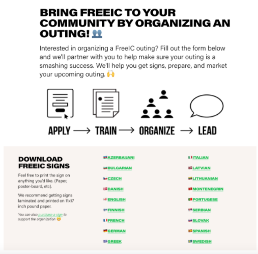 If you haven’t already, you should consider joining our movement! We have signs and cards translated into 18 different languages, we provide support for both single, and consistent outings, and we’ve identified ways to host FreeIC events outdoors, virtually, within a school setting, and within a business setting. Click here to learn more and contact us about how you can find your place within the movement!